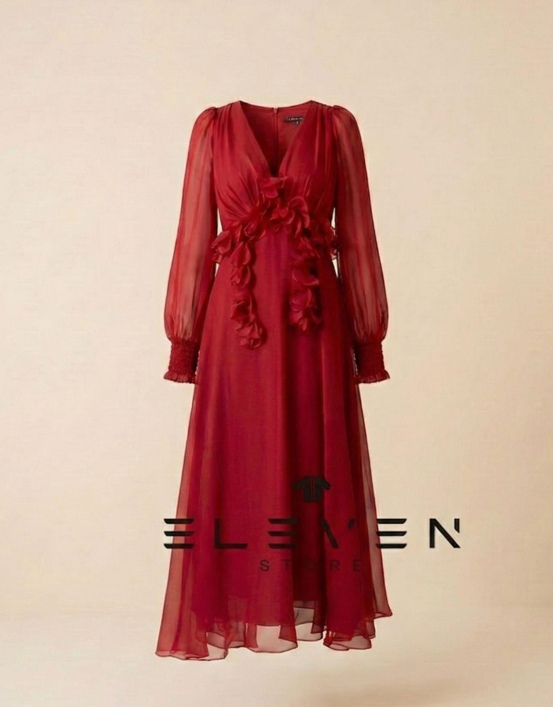 KADIN PUANTİYELİ ŞİFON ELBİSE İTHAL KIRMIZI