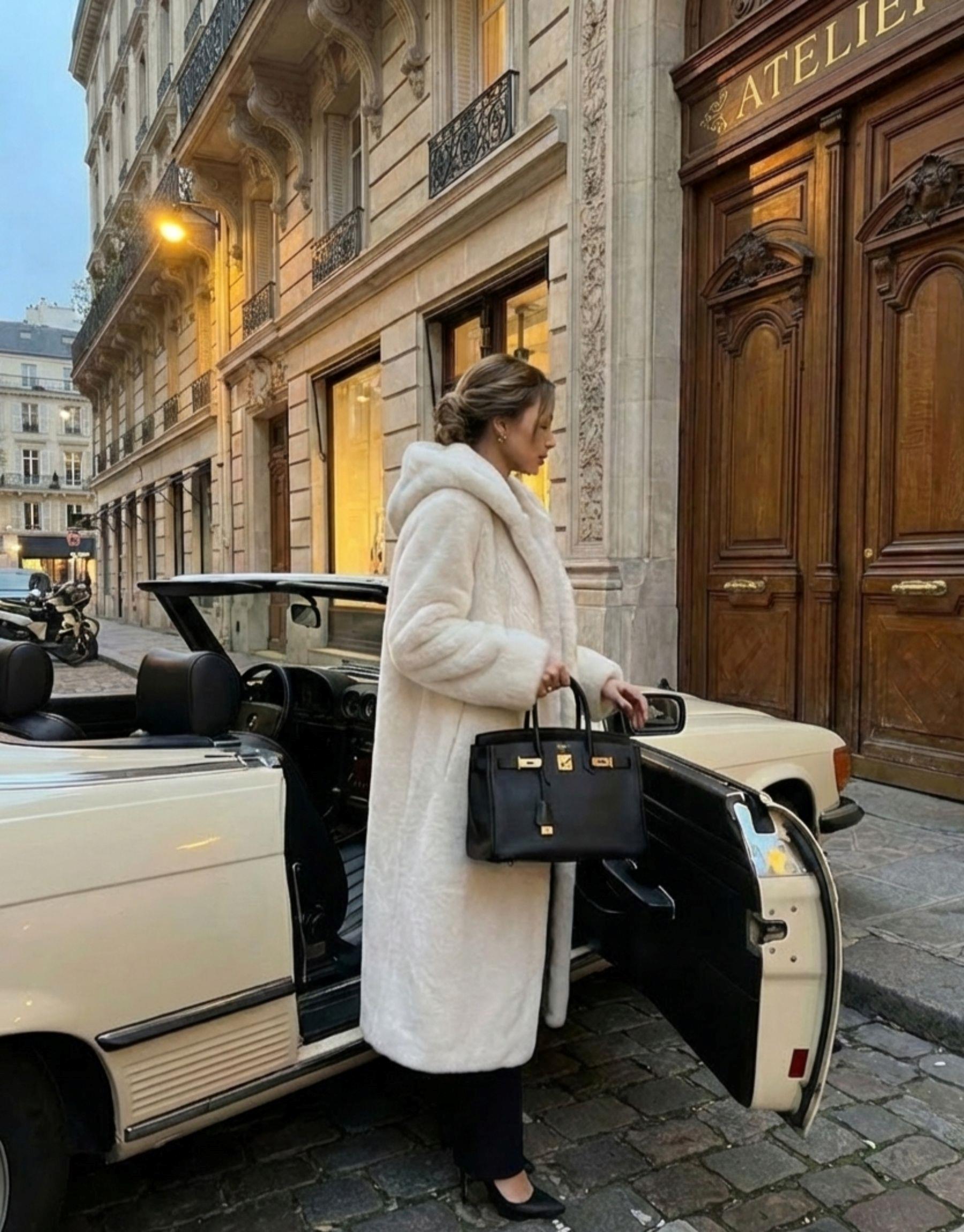 UZUN KÜRK CEPLİ GOLD DÜĞME KREM
