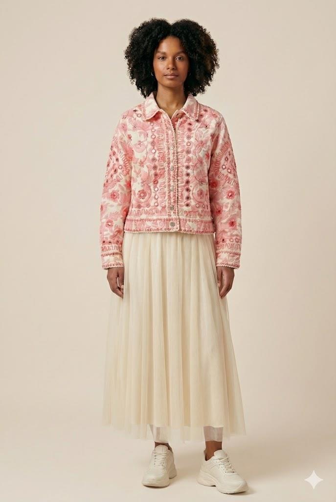 ÇİÇEK TASARIM CEKET KREM