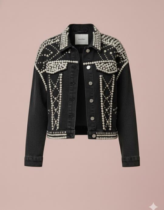 KADIN NAKIŞLI AYNA DETAY KOT CEKET FUŞYA