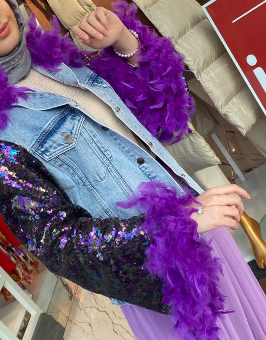 TÜY DETAY KOT CEKET MAVİ