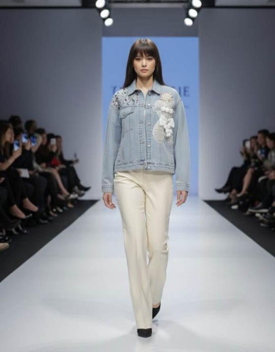TASARIM KURDELA DETAY İNCİLİ KOT CEKET MAVİ
