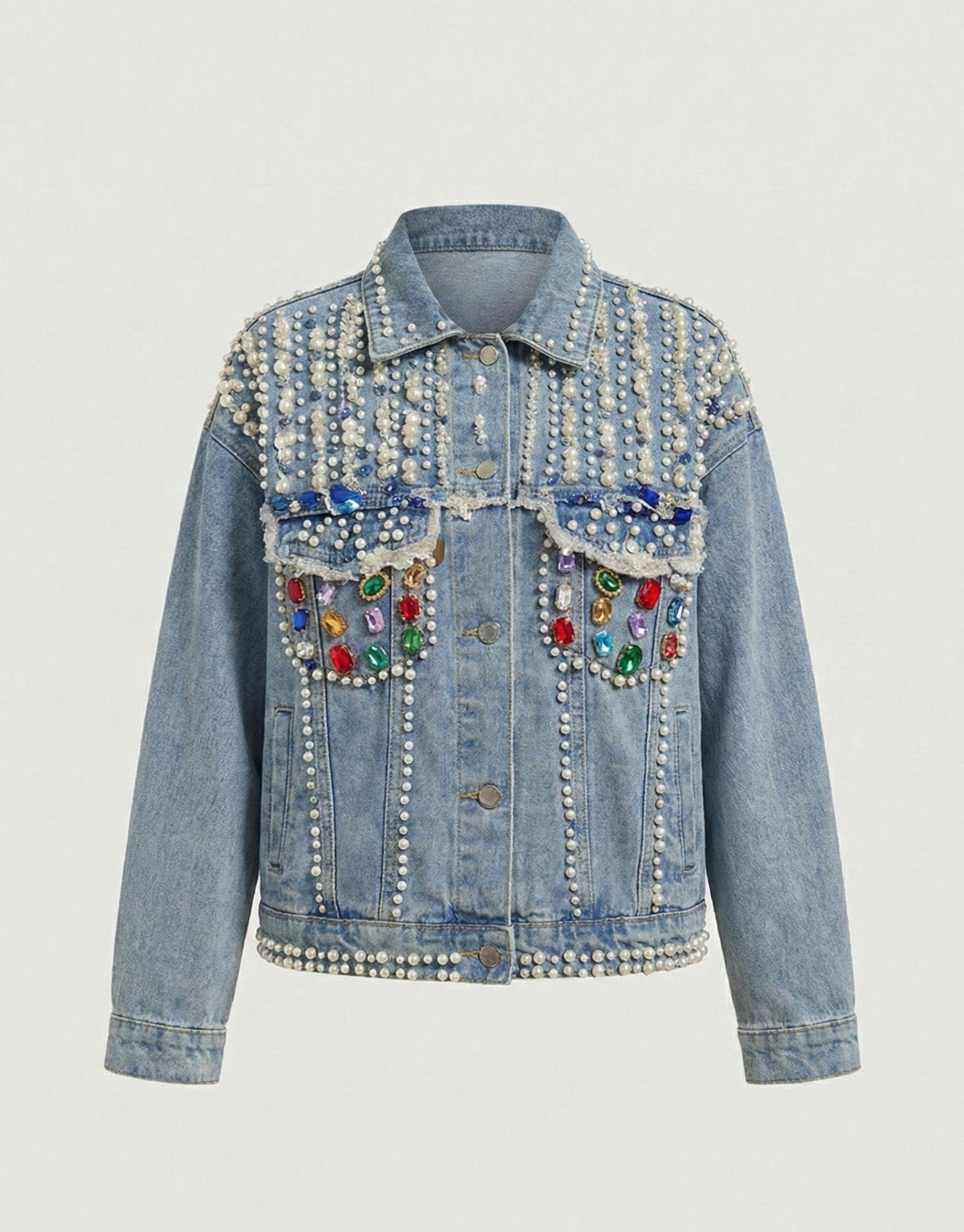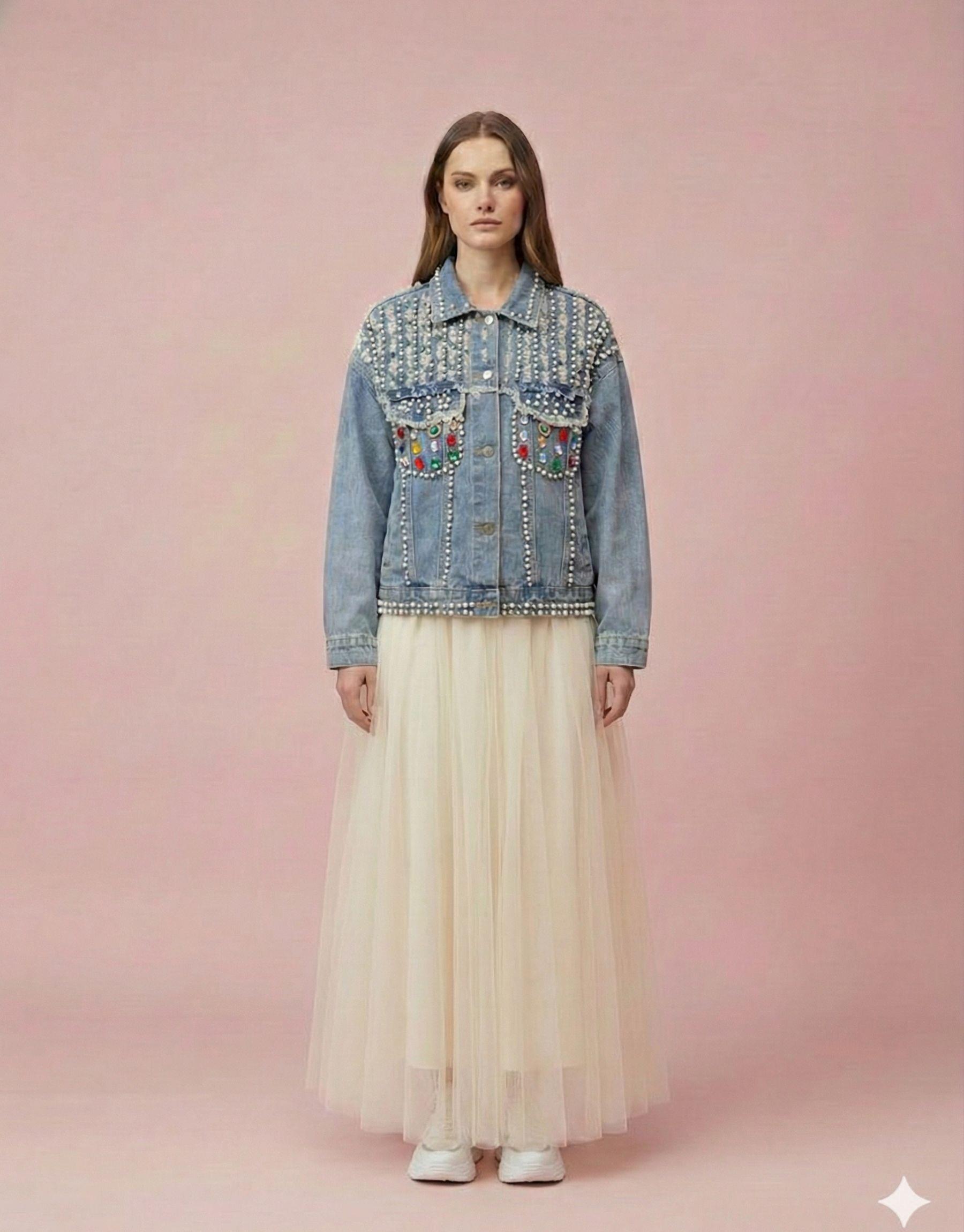 TÜL DETAY KOT CEKET MAVİ