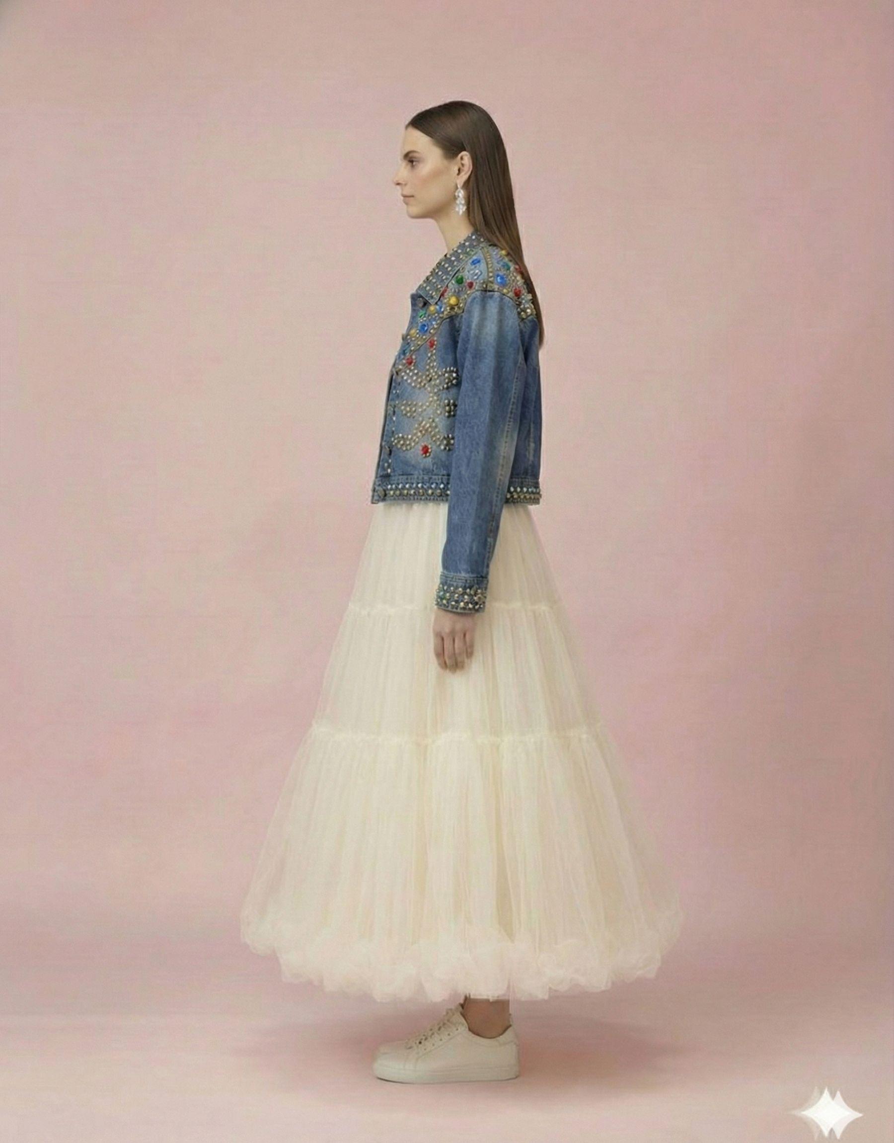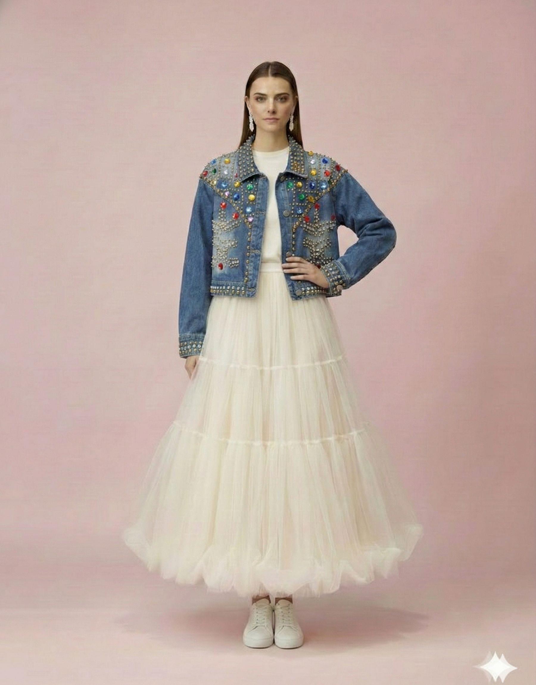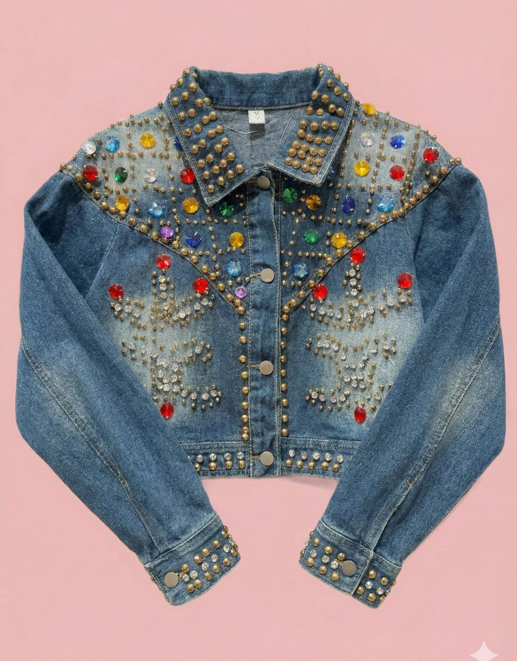 KADIN NAKIŞLI AYNA DETAY KOT CEKET FUŞYA