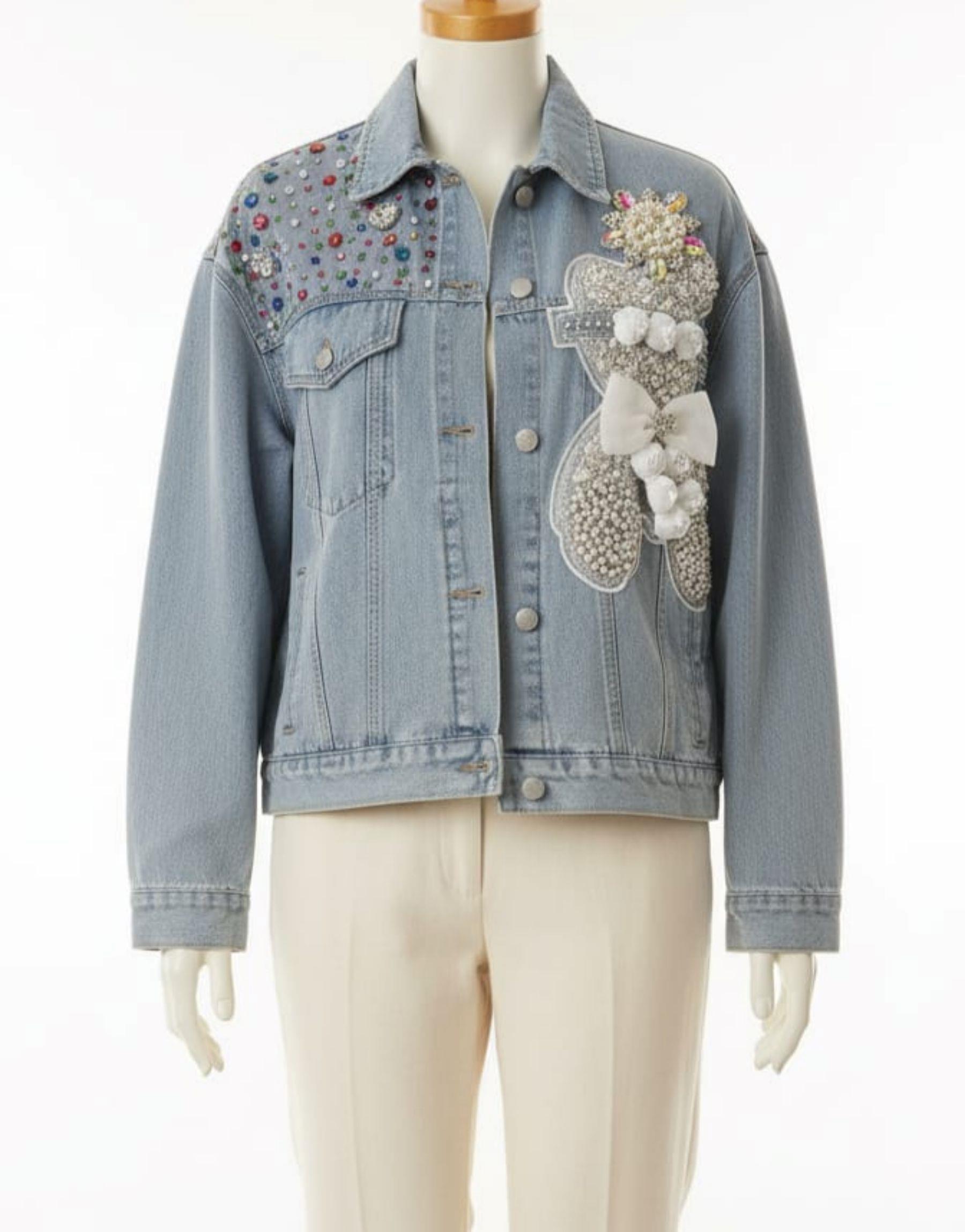 KADIN İNCİLİ KOT CEKET MAVİ