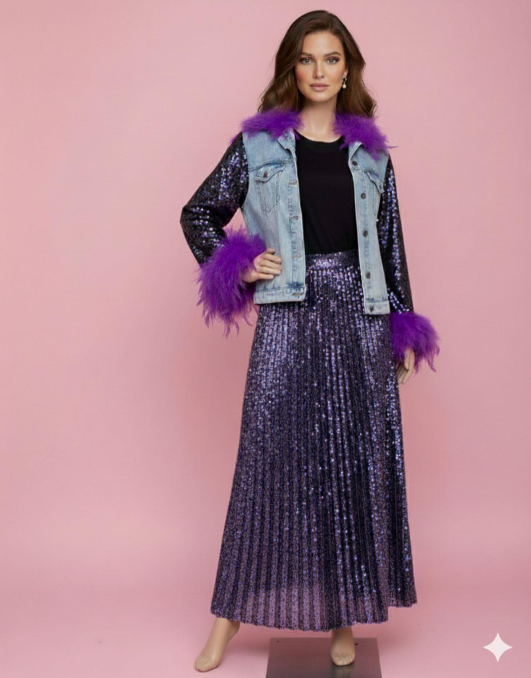KADIN NAKIŞLI AYNA DETAY KOT CEKET FUŞYA