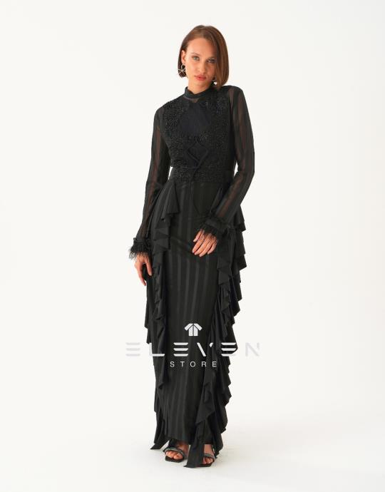 TASARIM VİNTAGE TÜL ELBİSE SİYAH