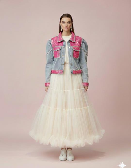TASARIM VİNTAGE TÜL ELBİSE KIRMIZI