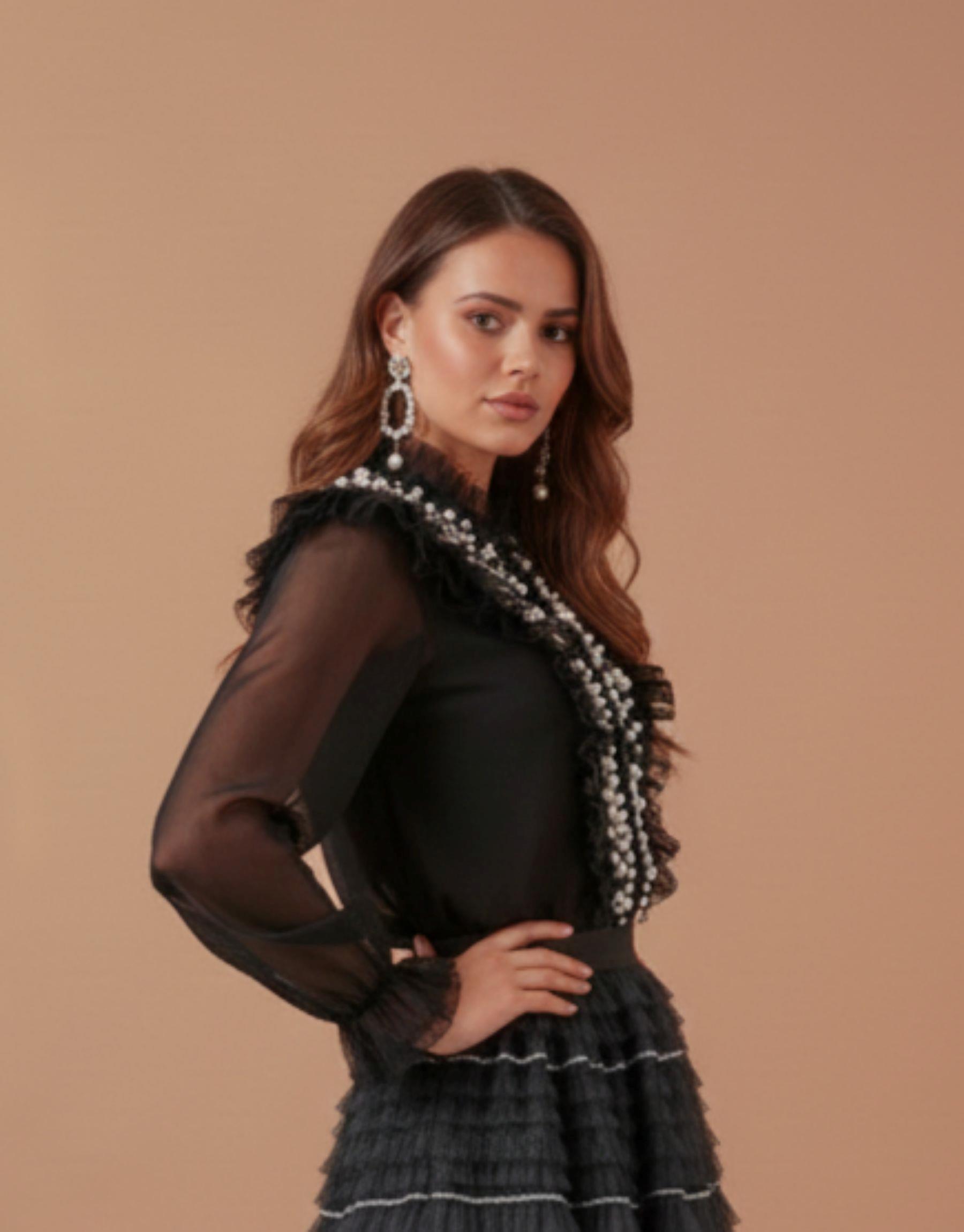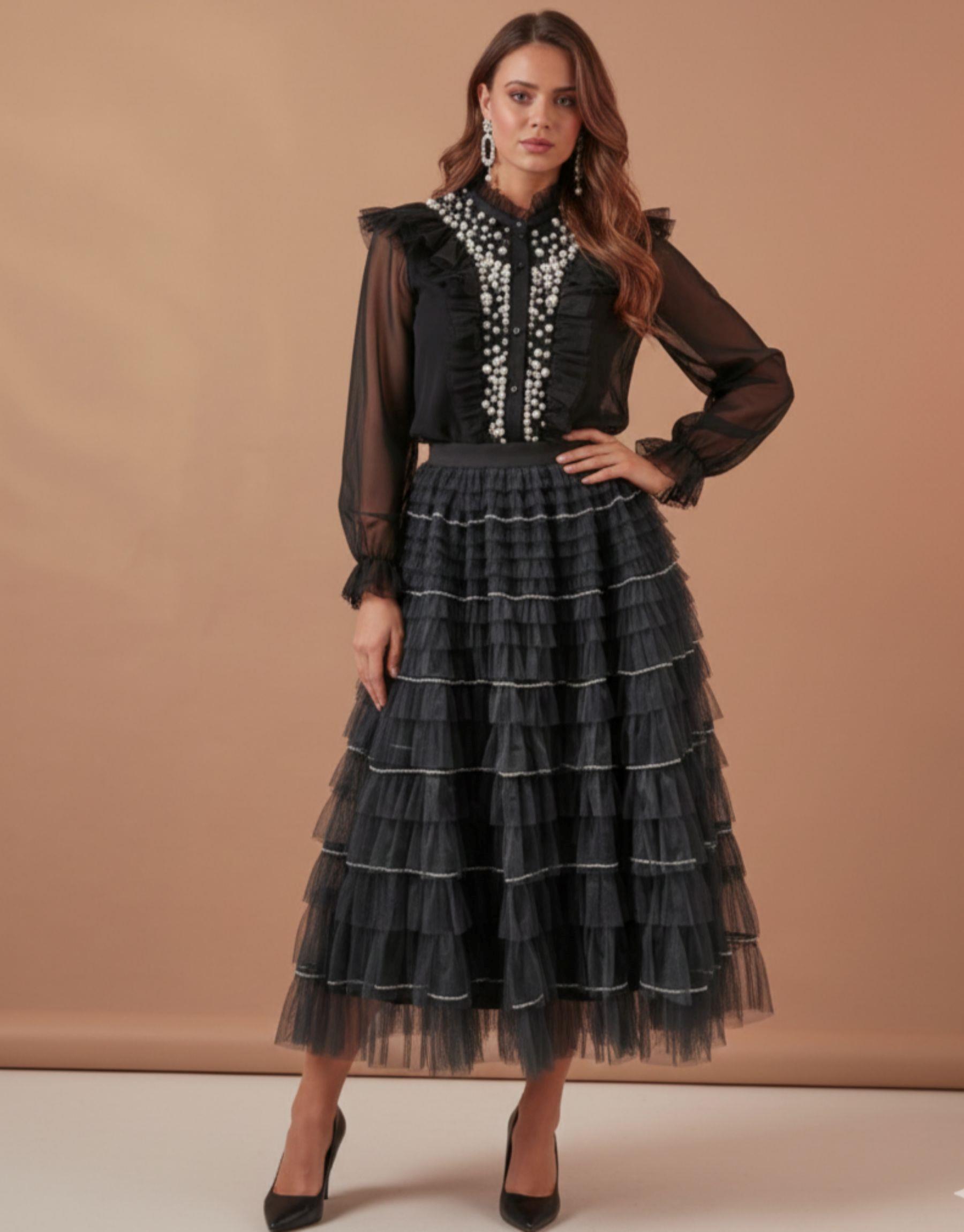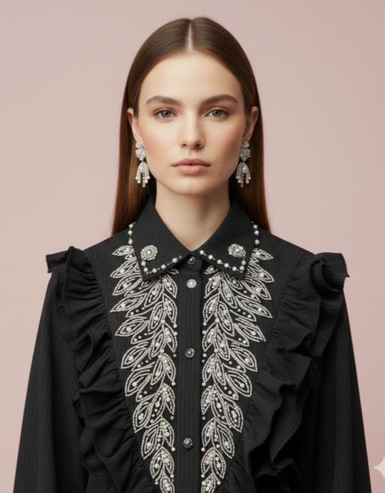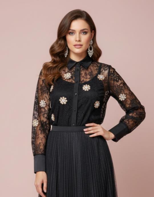 İNCİLİ TASARIM GÖMLEK SİYAH