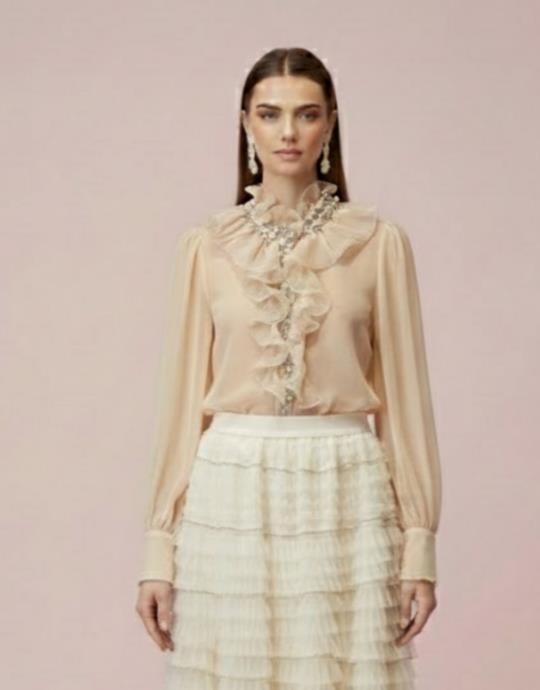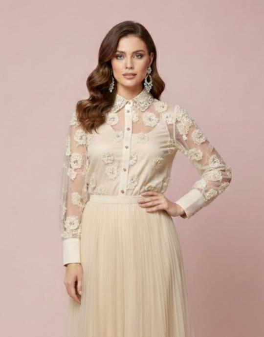 İNCİLİ TASARIM GÖMLEK BEJ