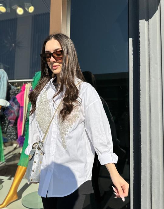 KELEBEK TAŞ DETAY GÖMLEK İTHAL BEYAZ