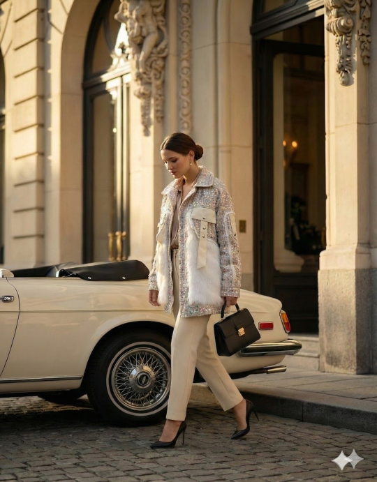 UZUN KÜRK CEPLİ GOLD DÜĞME KREM