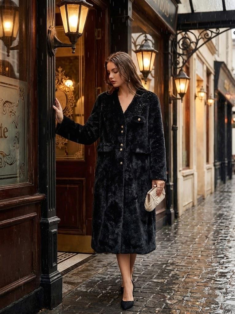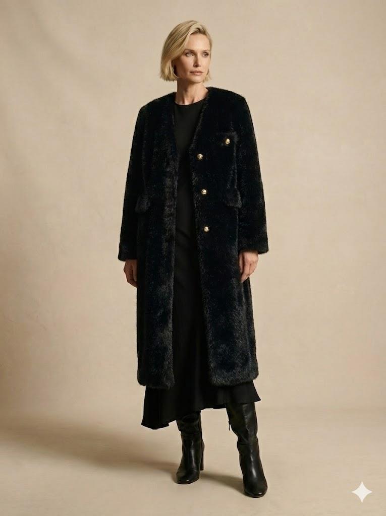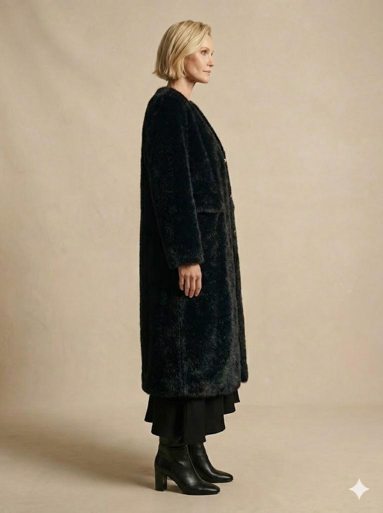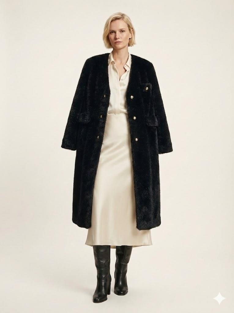 UZUN KÜRK CEP VE YAKA DETAY EKRU